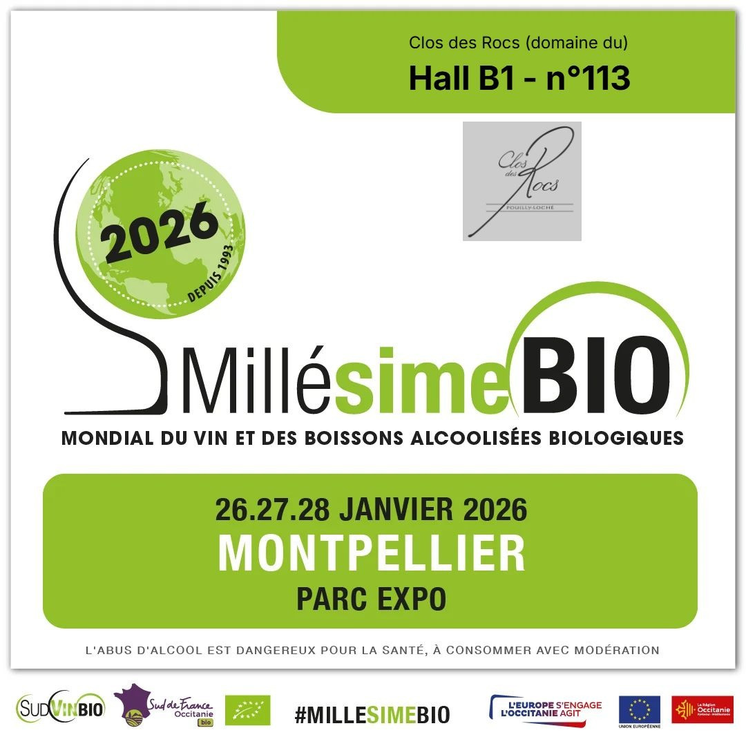 Millésime BIO, Mondial du vin biologique & des Autres Boissons Alcoolisées Bio<br /><br />Nous serons heureux de vous acceuillir sur notre stand lors de cet événement les 26,27 et 28 Janvier 2026<br /><br /><a href="https://www.millesime-bio.com/" target="_blank" rel="noopener">www.millesime-bio.com</a>